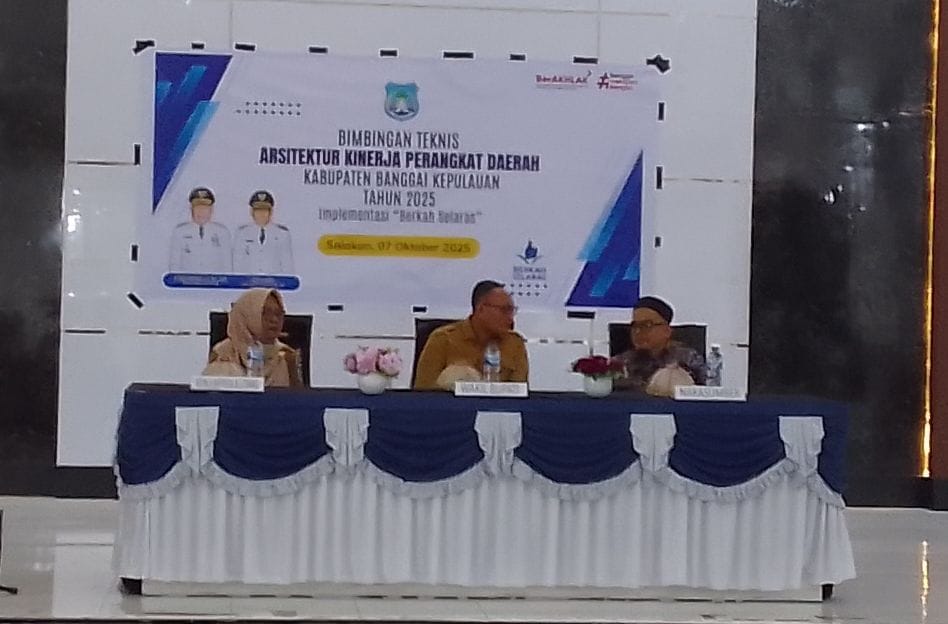 Bimbingan Teknis Arsitektur Kinerja Perangkat Daerah Kabupaten Banggai Kepulauan dilaksanakan pada Selasa, 07 Oktober 2025 bertempat di Aula Bappeda dan Litbang dibuka oleh Wakil Bupati Banggai Kepulauan, Bapak Serfi Kambey.