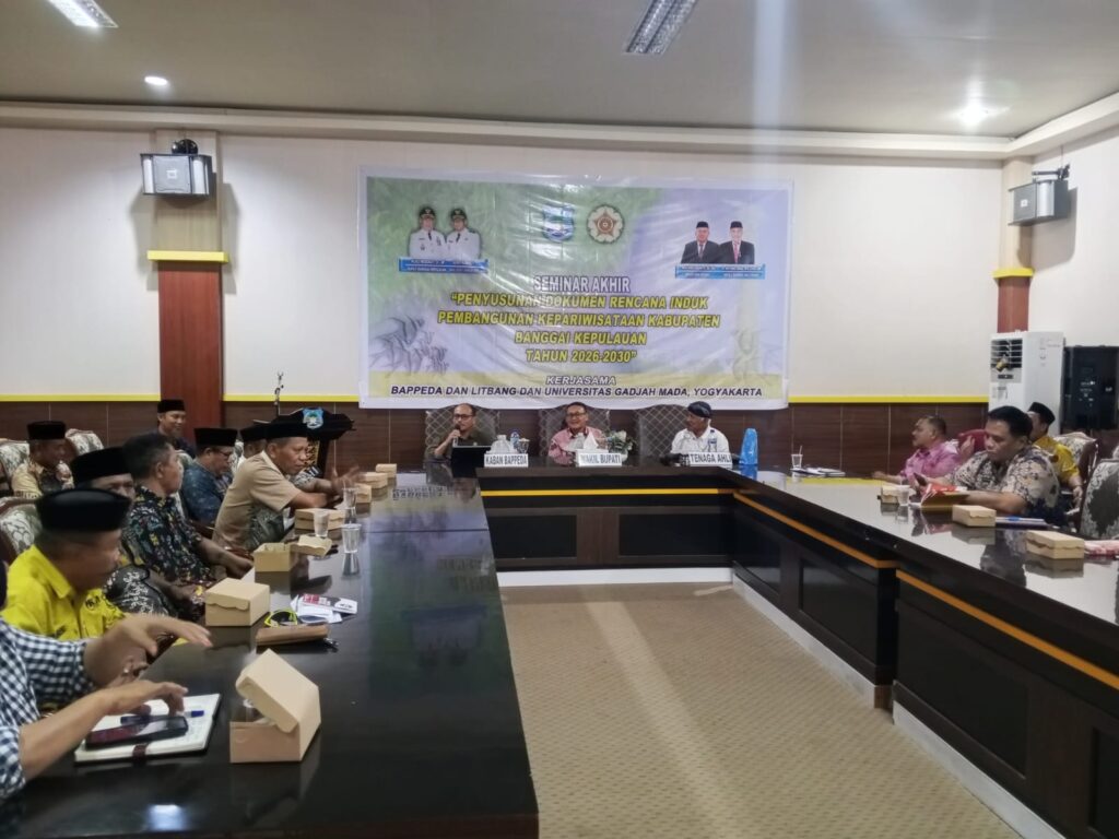 Salakan, Pelaksanaan Seminar Akhir Penyusunan Dokumen Rencana Induk Pembangunan Kepariwisataan Kabupaten Banggai Kepulauan Tahun 2026 -2030 ditujukan untuk menjadi roadmap dalam Pemerintah Daerah memaksimalkan potensi daerah selang lima tahun kedepan. Hadir dalam kegiatan yakni Wakil Bupati Banggai Kepulauan, Anggota DPRD (Bpk. H.L.Sadardi), Tim Ahli dari Universitas Gajahmada, Asisten Perekonomian, Staf Ahli Ekonomi, Pembangunan, dan Kemasyarakatan, Para Pimpinan Perangkat Daerah, Para Camat dan Kepala Desa. Kegiatan dilaksanakan di Ruang Rapat Kantor Bupati Banggai Kepulauan.